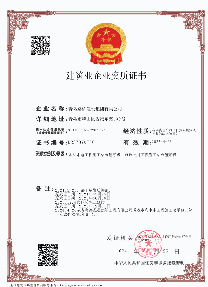 近日,青岛市行政审批局发布了《米兰官方站网页版核准建设工程相关企业资质和建筑施工企业安全生产许可证名单的通知》,米兰MiLan(中国)旗下交发集团取得水利水电施工总承包二级资质,进一步拓宽了集团水利水电工程业务承接范围,为多元化、可持续发展奠定了坚实基础。