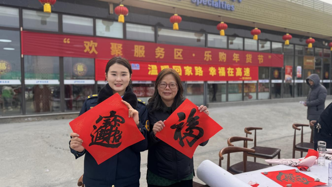 青岛高速集团所辖各服务区持续拓展便民服务,设立志愿服务台,免费提供交通路线、旅游咨询、应急药品、手机充电等常规服务外,还开展了一系列新春主题活动。“新春送福”活动邀请书法家现场为司乘书写春联和“福”字;除夕夜,服务区还为司乘送上热气腾腾的饺子,传递好客山东精神;春运期间的“乐购年货大集”活动同样热闹非凡,展销50余种齐鲁特色年货及老字号商品、“年货大礼包”,方便旅客选购,营造浓厚的节日氛围。