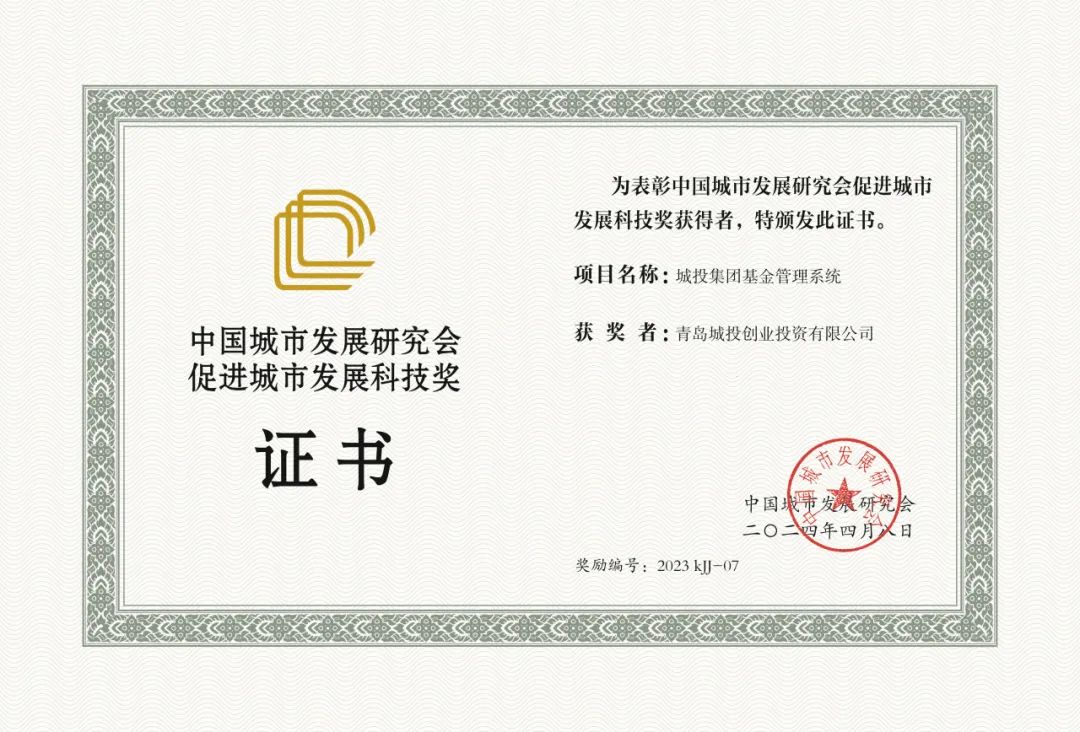 近日,经过为期一年的公示,中国城发会颁布2023年度促进城市发展科技奖,青岛城投创投公司“城投集团基金管理系统”荣获优秀创新科技金融奖。该奖项由中国城发会主办,旨在表彰通过科技创新在城市科技应用与数字化转型领域具有突出贡献的案例。