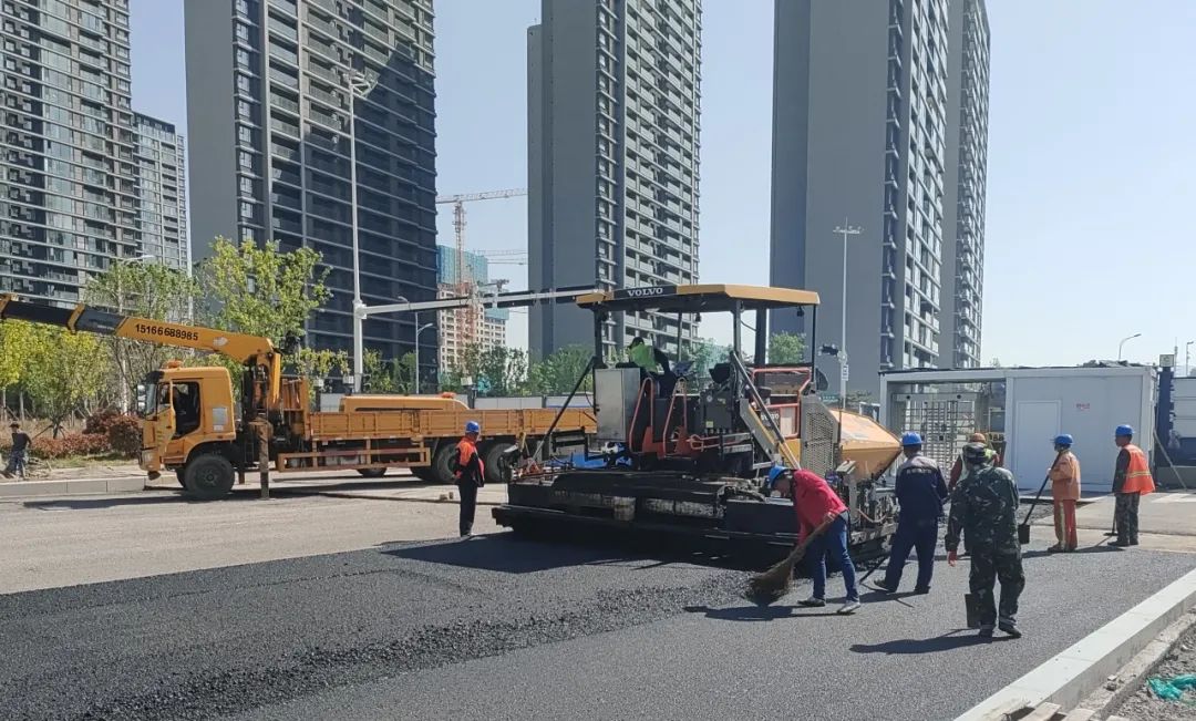 青岛创智菁英城(青钢片区)基础设施配套二期工程-下面层沥青摊铺启动