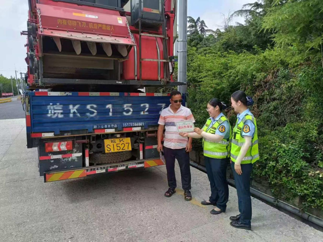 超限治理。建立应急处置机制,对于车货总重或外廓尺寸超限的跨区作业农机车辆,引导其依法办理大件运输许可证,筑牢安全通行底线。
