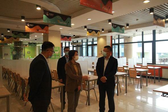 近期,青岛市纪委、市监委驻市教育局纪检监察组组长、市教育局党组成员张丹丹一行到山东省青岛第一国际学校进行疫情防控工作督查。创发集团党委委员、副总经理尚杰,国际学校运营总监董济维、副校长计祝保陪同并现场汇报国际学校疫情防控及教育教学工作情况。