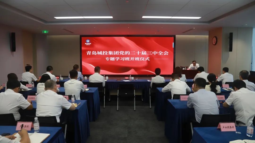 (图为城投集团集中收看青岛市领导干部党的二十届三中全会精神专题学习班开班仪式)